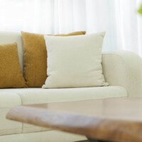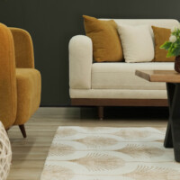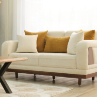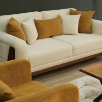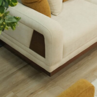 The upholstery features a smooth, creamy fabric that highlights LOTUS’s softness while maintaining a polished, modern appearance. Subtle stitched details and thoughtfully integrated side panels introduce a touch of craftsmanship, giving the sofa a distinctive yet understated personality. Plush seat and back cushions provide balanced support, while the accent pillows — in warm, nature-inspired tones — add depth and a sense of cozy sophistication.