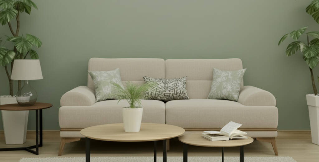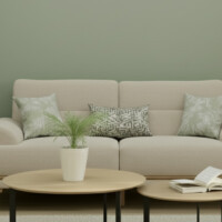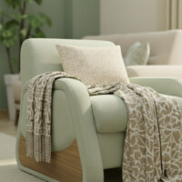 The upholstery features a smooth, tactile fabric that reinforces LYON’s relaxed character. Generous seat and back cushions offer plush comfort, while the patterned accent pillows create delicate visual interest through their soft botanical tones. The overall effect is effortless and airy — a piece that feels refined, welcoming, and perfectly suited to interiors centered around tranquility and gentle modern style.