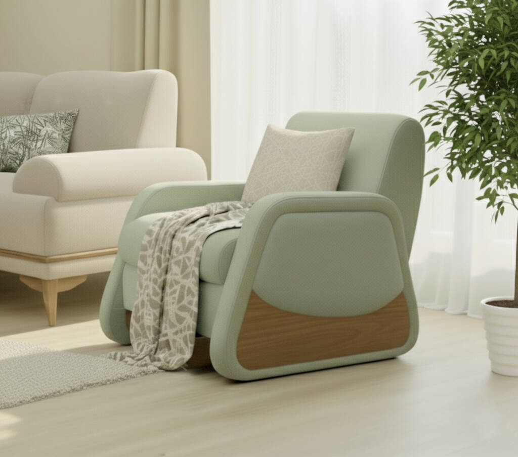 LYON introduces a soothing blend of modern comfort and soft organic curves, creating an atmosphere that feels calm, balanced, and naturally elegant. Its silhouette is defined by gently rounded cushioning and a subtle, inviting structure that brings warmth without overwhelming the space. The wooden base adds an earthy foundation, grounding the design while enhancing its serene, nature-driven appeal.