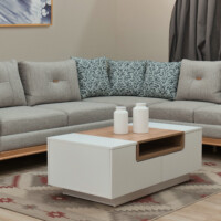- A solid wood coffee table with integrated storage