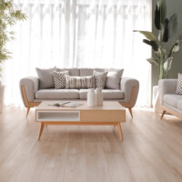 - A minimalist oval or rectangular coffee table in warm oak or walnut