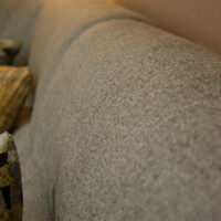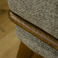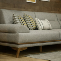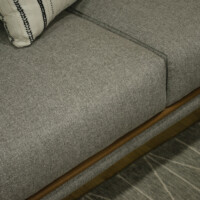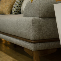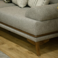 Le canapé est surélevé sur des pieds en bois massif avec une finition naturelle, ajoutant chaleur et contraste au revêtement. Cette base surélevée allège la masse visuelle de la configuration d’angle, améliore la circulation de l’air autour du canapé et renforce son caractère contemporain tout en assurant sa durabilité.