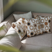 Le confort est au cœur du salon NIHED. Les coussins d’assise profonds offrent un soutien constant pour une utilisation quotidienne, tandis que les coussins de dossier moelleux favorisent une posture détendue. Les coussins décoratifs introduisent un contraste chaleureux et un rythme visuel, ajoutant de la profondeur sans dominer la palette neutre du canapé.