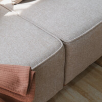 Le design se définit par des volumes épurés et rectilignes, adoucis par un revêtement lisse et des proportions douces. De larges accoudoirs et un dossier continu créent une sensation de stabilité et de structure, tandis que les lignes droites confèrent au canapé un aspect moderne et bien composé, à la fois élégant et décontracté.