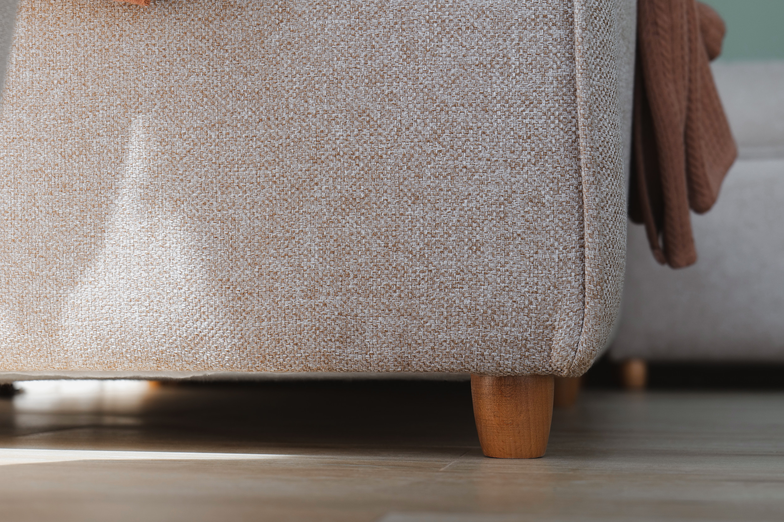 Le canapé repose sur des pieds en bois discrets qui le soulèvent subtilement du sol. Cette élévation ajoute de la légèreté à la forme générale, améliore la fluidité visuelle et renforce le caractère contemporain du canapé tout en conservant une base solide et durable.