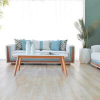 Le mélange harmonieux de tissu clair et de touches de bleu froid introduit une énergie rafraîchissante d’inspiration côtière : calme, aérée et délicieusement moderne. La profondeur d’assise généreuse et les coussins de dossier offrent un confort décontracté, tandis que les coussins géométriques offrent un contrepoint visuel vivant qui rehausse le design général.