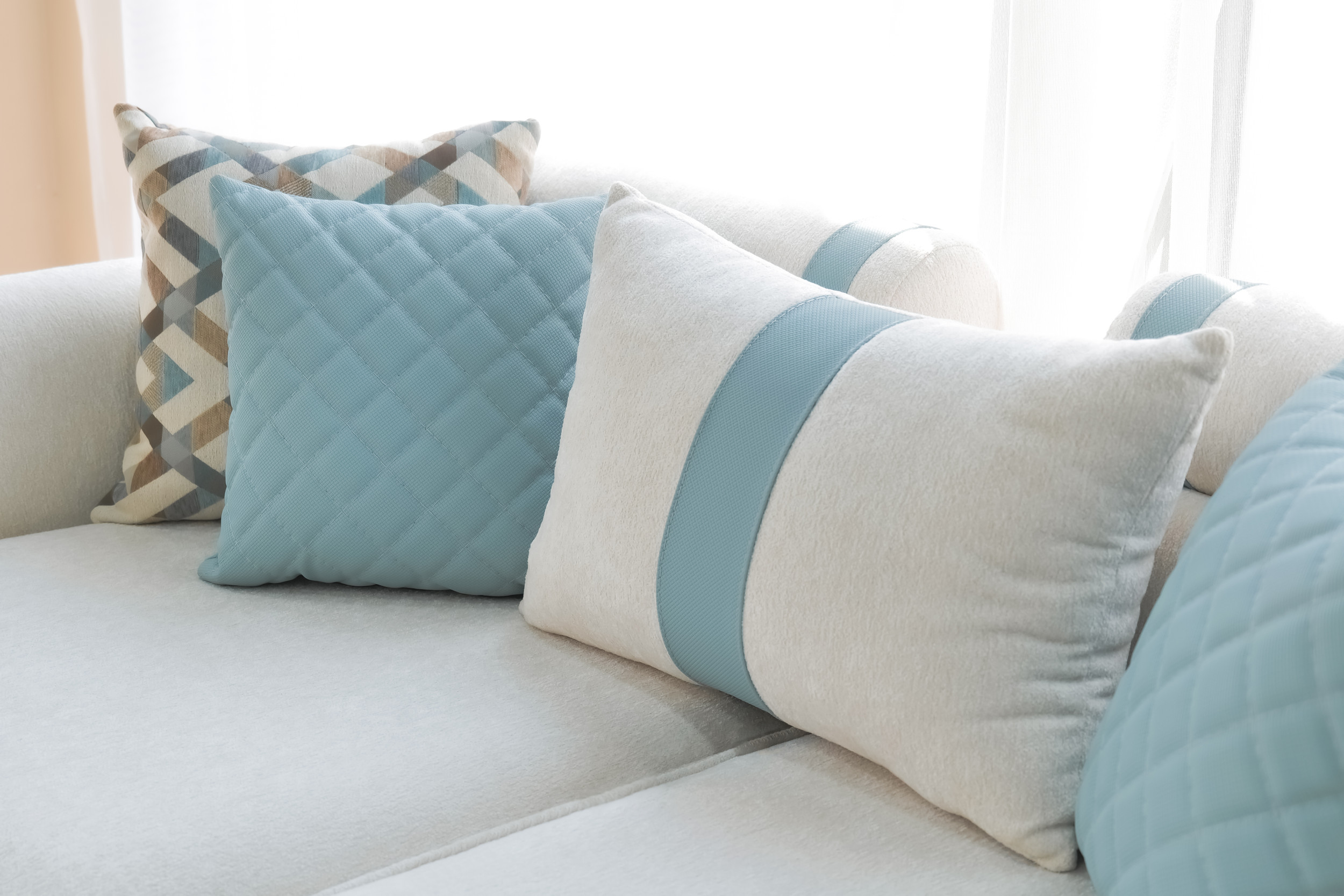 Garnissage des coussins en microfibre antibactérienne, hypoallergénique et anti-acariens.