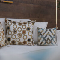- Un jeté texturé dans des tons taupe ou olive atténués pour rehausser l’atmosphère chaleureuse et accueillante