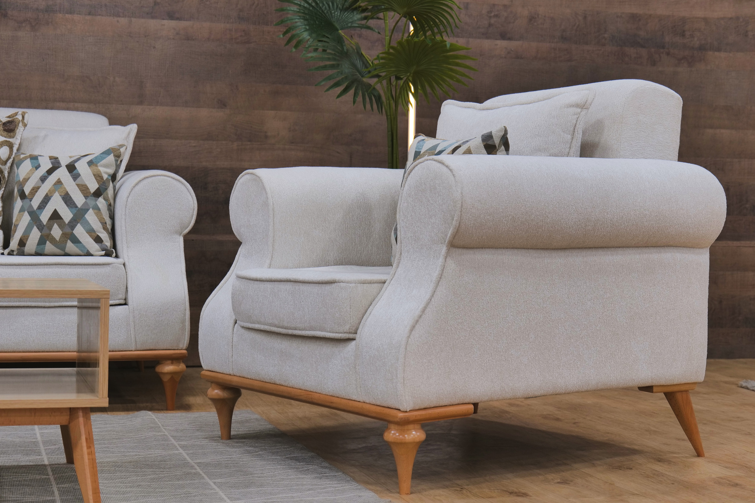 Des pieds en bois chaleureux et un détail de base raffiné ancrent le design, apportant chaleur naturelle et stabilité à l’ensemble. Qu’il soit utilisé comme un ensemble complet ou stylisé individuellement, PATRICIA apporte équilibre, grâce et une ambiance accueillante à tout espace de vie.