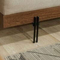 Le canapé est soutenu par de fins pieds en métal et une base en bois subtilement exposée, créant un effet flottant qui améliore l’ouverture et la fluidité visuelle. Cette structure surélevée allège la composition générale et renforce l’attrait architectural moderne de SLIM.