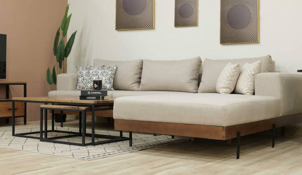 La configuration d’angle maximise la fonctionnalité tout en conservant un agencement propre et adaptable. Il s’intègre parfaitement dans les espaces de vie ouverts ainsi que dans les espaces plus compacts, offrant une flexibilité sans compromettre le style.