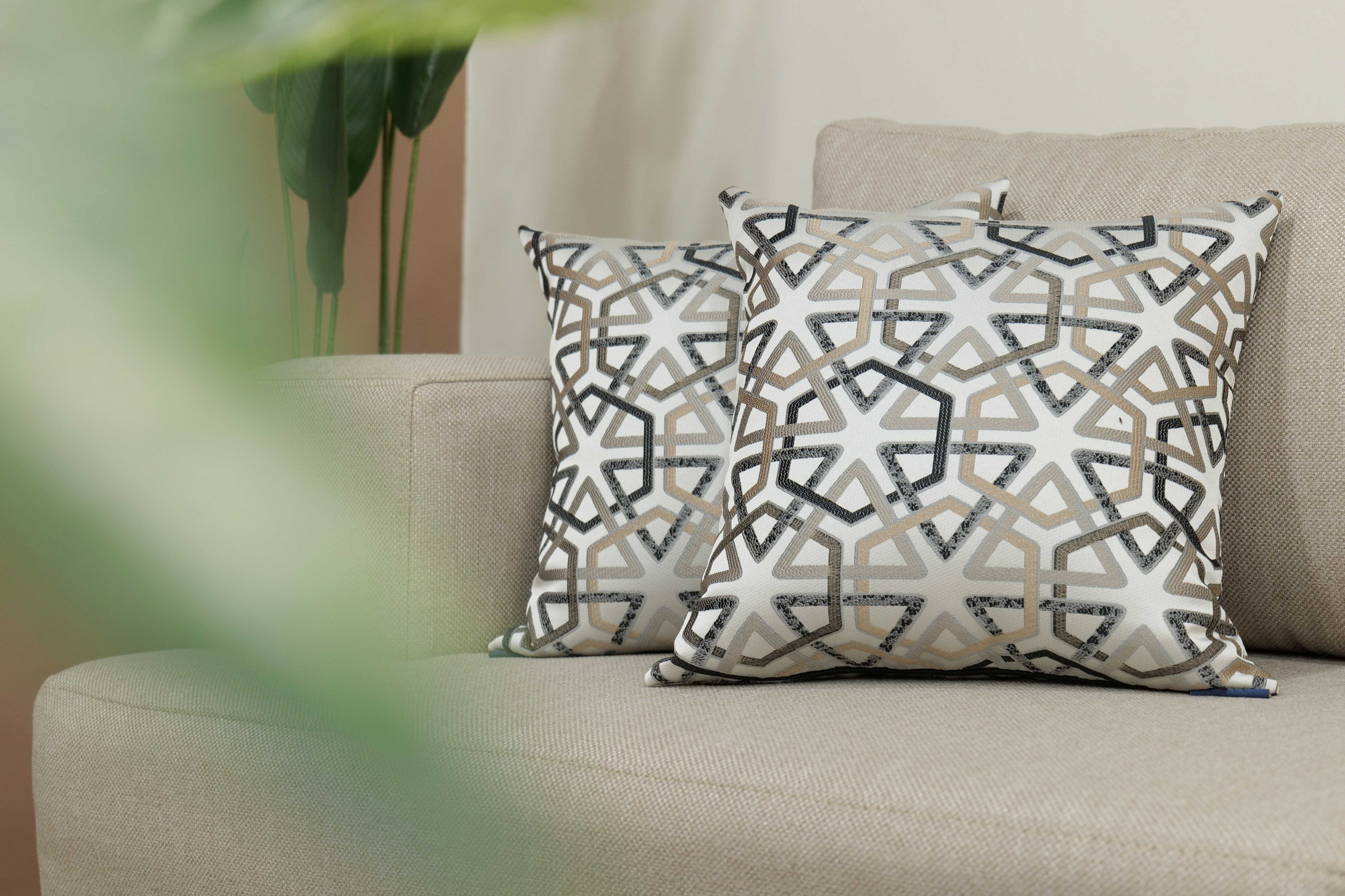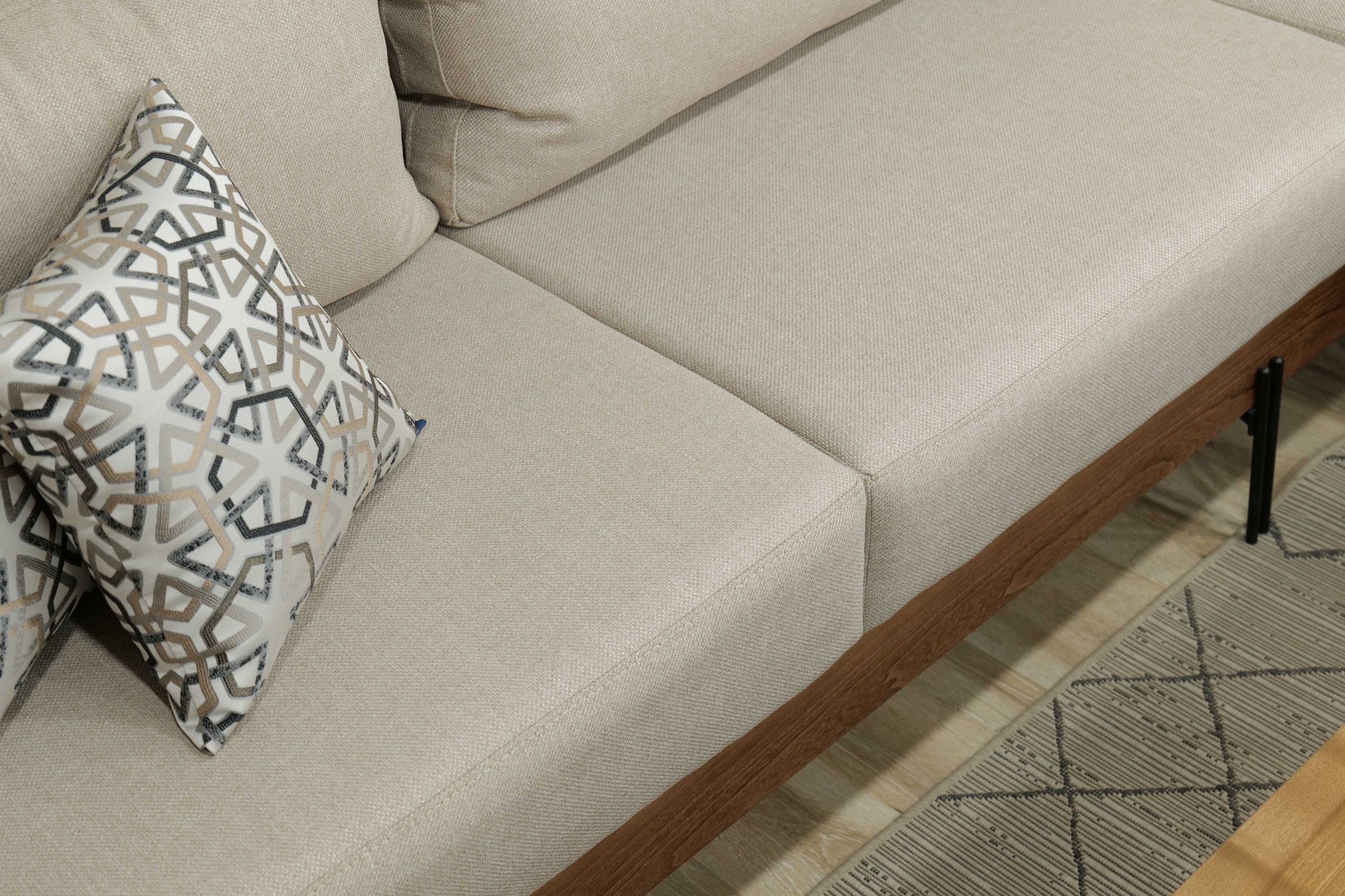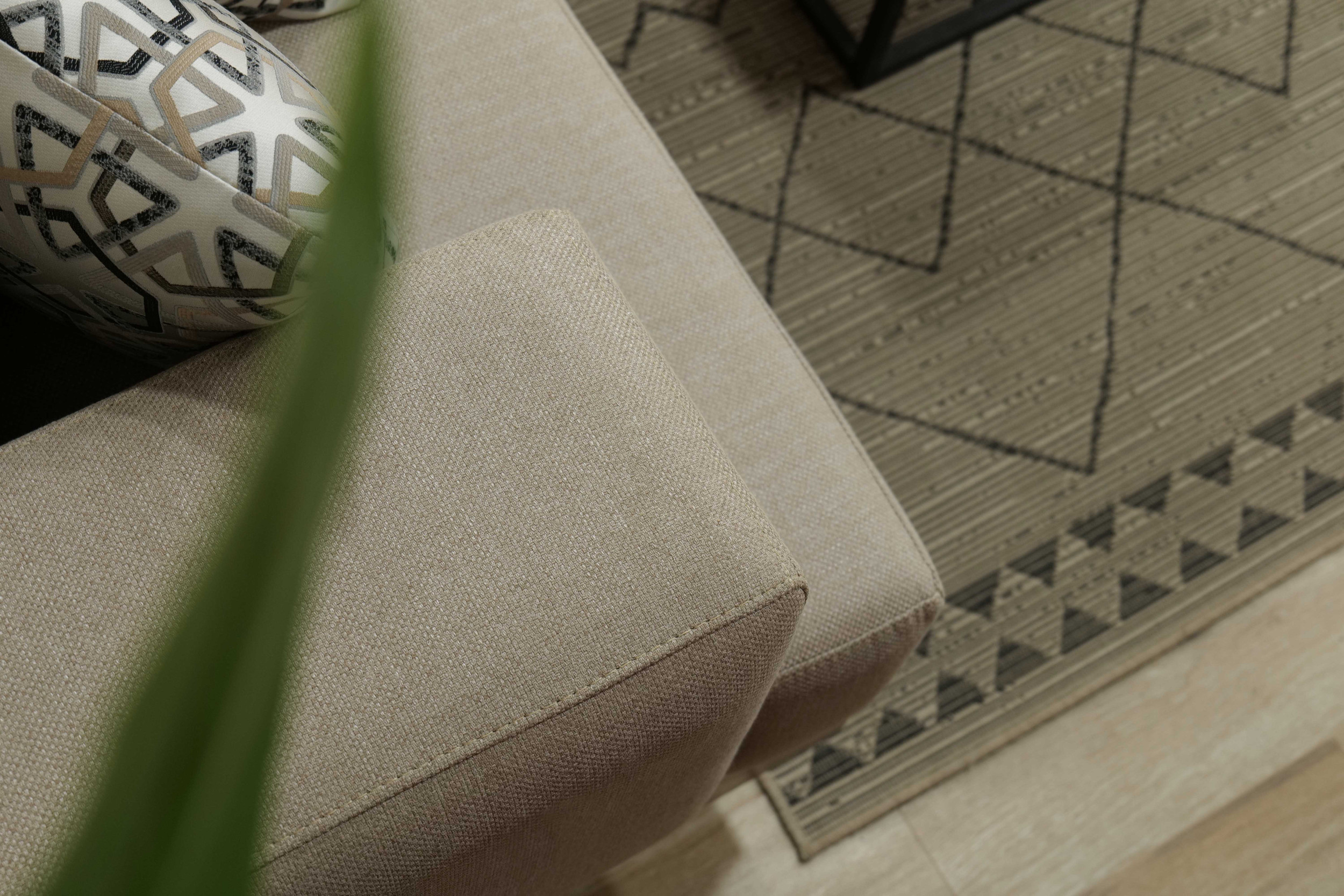 Le confort est assuré par des coussins d’assise généreusement dimensionnés qui offrent un soutien constant pour une utilisation quotidienne. Les coussins de dossier sont légèrement rembourrés pour favoriser une assise détendue, tandis que les coussins décoratifs introduisent une texture douce et un contraste visuel, tout en conservant un aspect cohérent et soigné.
